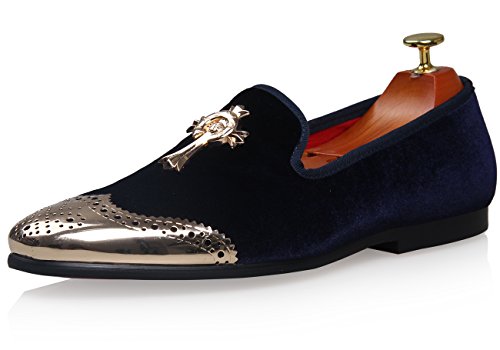 ELANROMAN offer Men's Vintage Velvet Golden Cross Buckle Metal Shoes Top Noble Loafer Shoes Slip-on Loafer Smoking Slipper (UK 8.0 EU 42, Navy Blue). This awesome product currently limited units, you can buy it now for £99.00, You save -