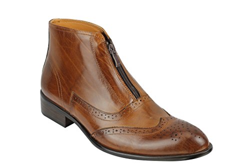Best Seller! XPOSED New Mens Real Leather Ankle Brogue Boots Zip Formal Casual Shoes in Black, Tan Brown UK Size [UK 9 EU 43,Brown] Review